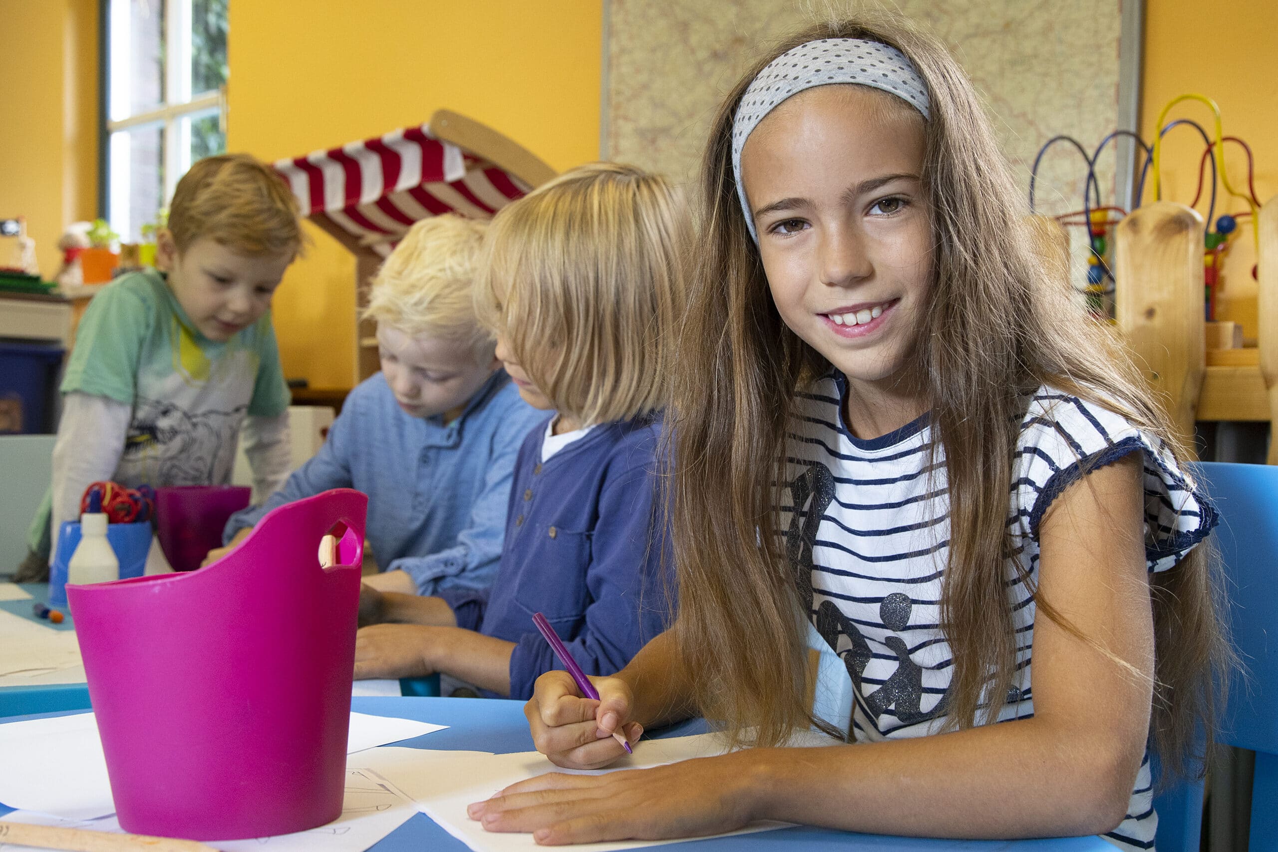 Jede Menge Spielideen und Möglichkeiten bietet unser Indoorspielbereich. Hier können Kinder jeden Alters malen und basteln oder mit neuen Freunden Brettspiele ausprobieren. Für die Kleinen gibt es eine Spielecke, für die Größeren stehen ein Kickertisch sowie eine Tischtennisplatte bereit. Sportlicher Spaß ist hier garantiert und fordert den Wettkampfgeist heraus.